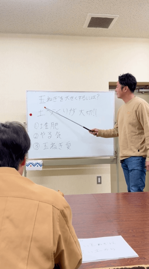 きたみらい玉葱振興会青年部 中根部会長より指導を賜る。