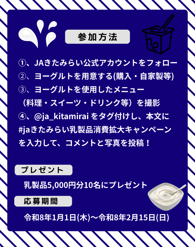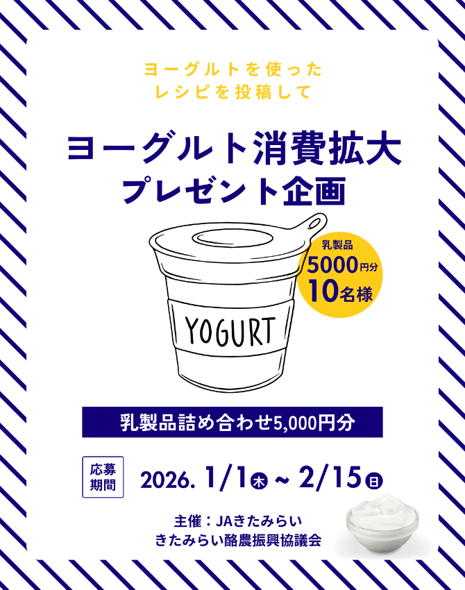 令和8年1月1日(木)から「ヨーグルトを食べて応援!乳製品消費拡大キャンペーン」を開催します!!!