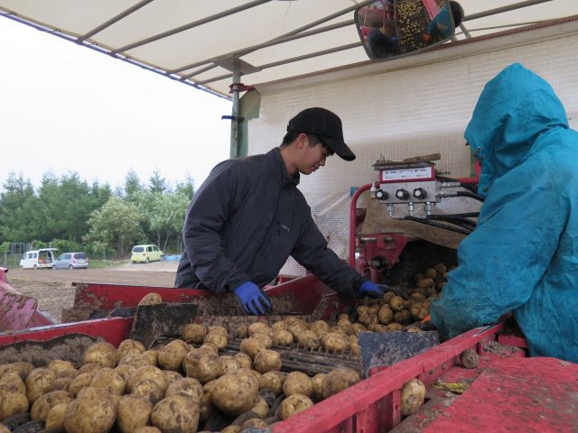 現在JAきたみらいでは、玉ねぎやじゃがいもの収穫作業最盛期! 職員はそれぞれ通常業務の都合をつけ、9月上旬から5日間程度、実習に参加しています。