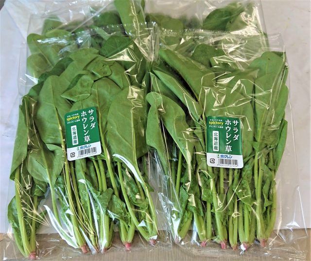 普通のほうれん草は手詰めなのですが、サラダほうれん草は専用の機械で袋詰めされ、この姿で消費者の皆さまのもとへ!